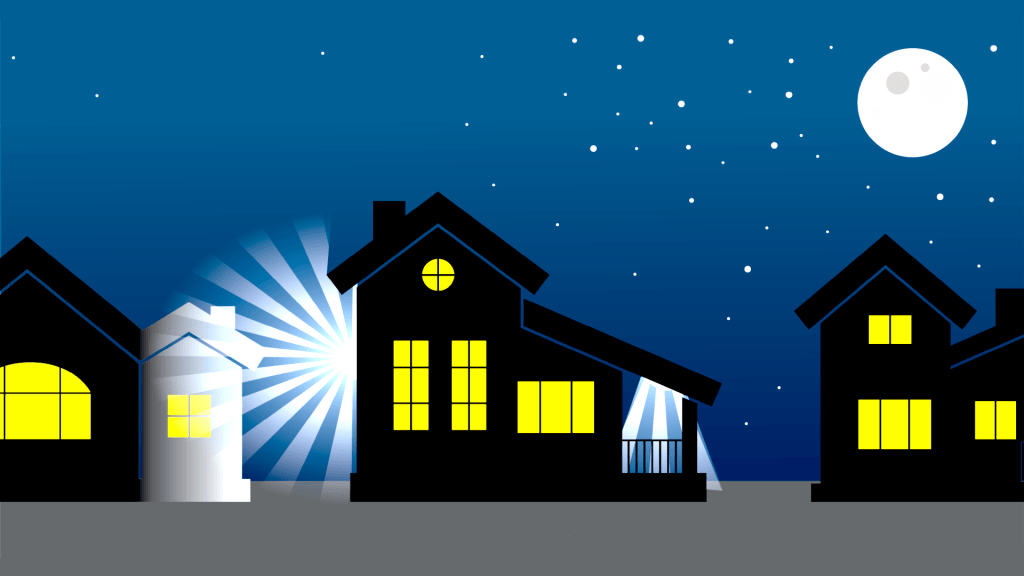 The best place to start fighting light pollution is at home. Walk around your house or business after dark and see which lights are on. Do you need all of them? Burglary is not a major problem where we live, so your house is pretty safe. If you decide to keep a few lights, put them on a timer or motion sensor.